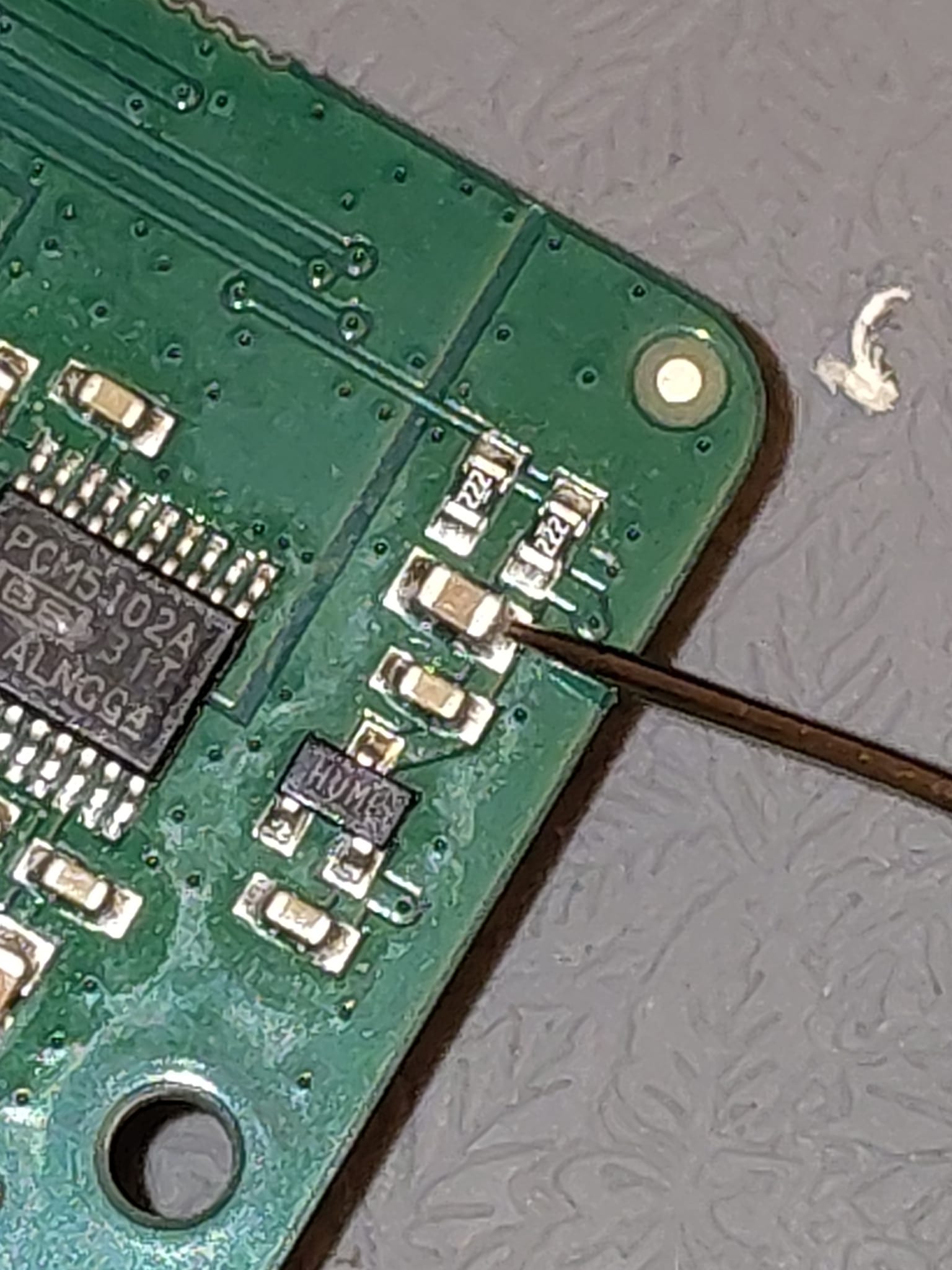 I put below the dmesg output. For the resistance between the indicated locations, there is continuity and a resistance of approximatively 14.8Mohm.