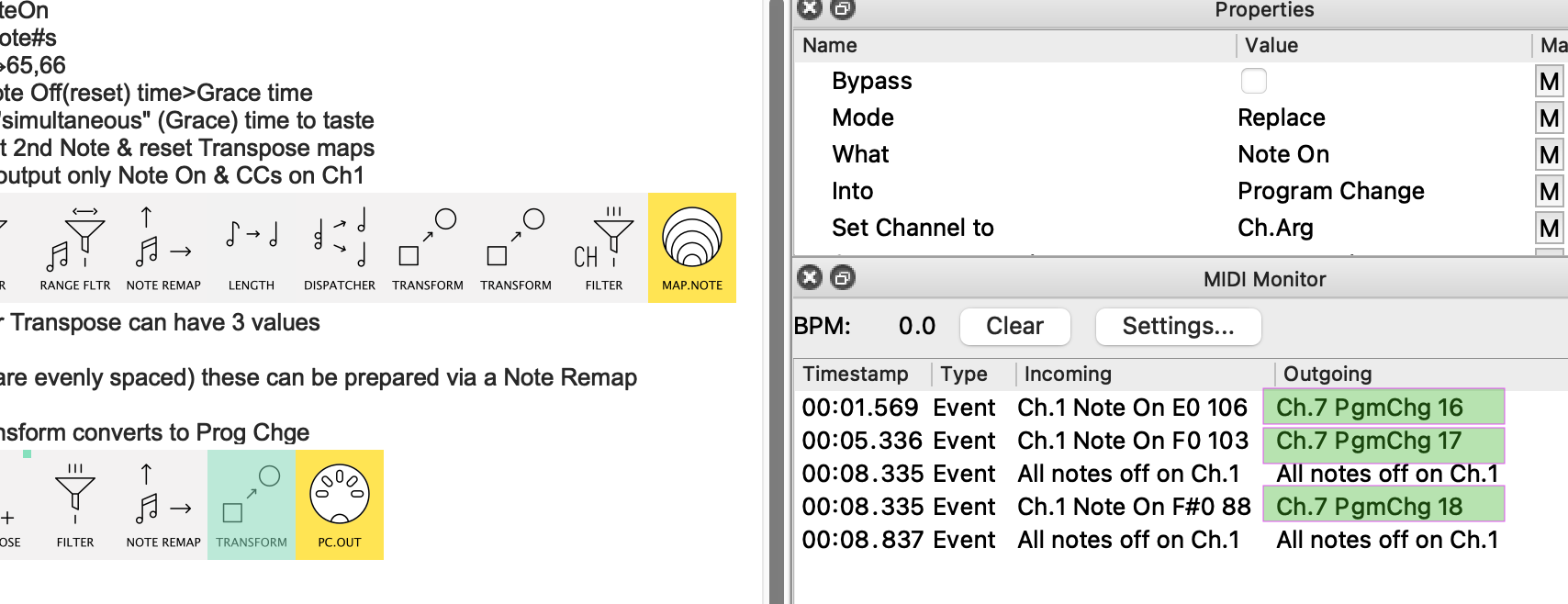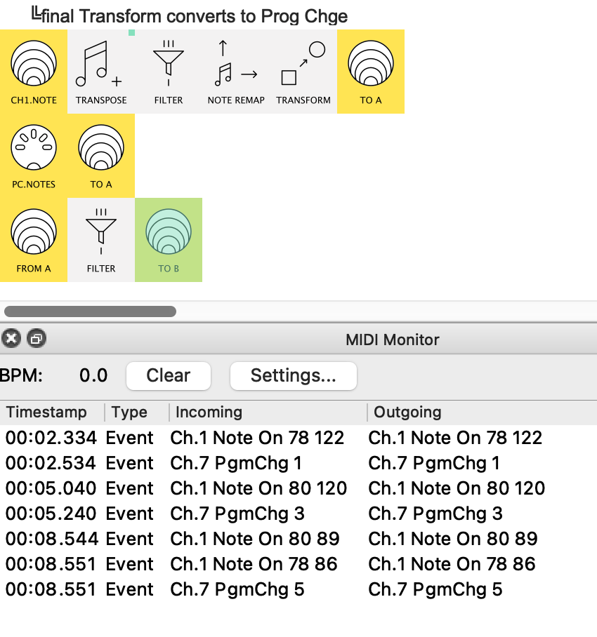 why is the transform changing to a Control Change and not a PC Change in row 1?