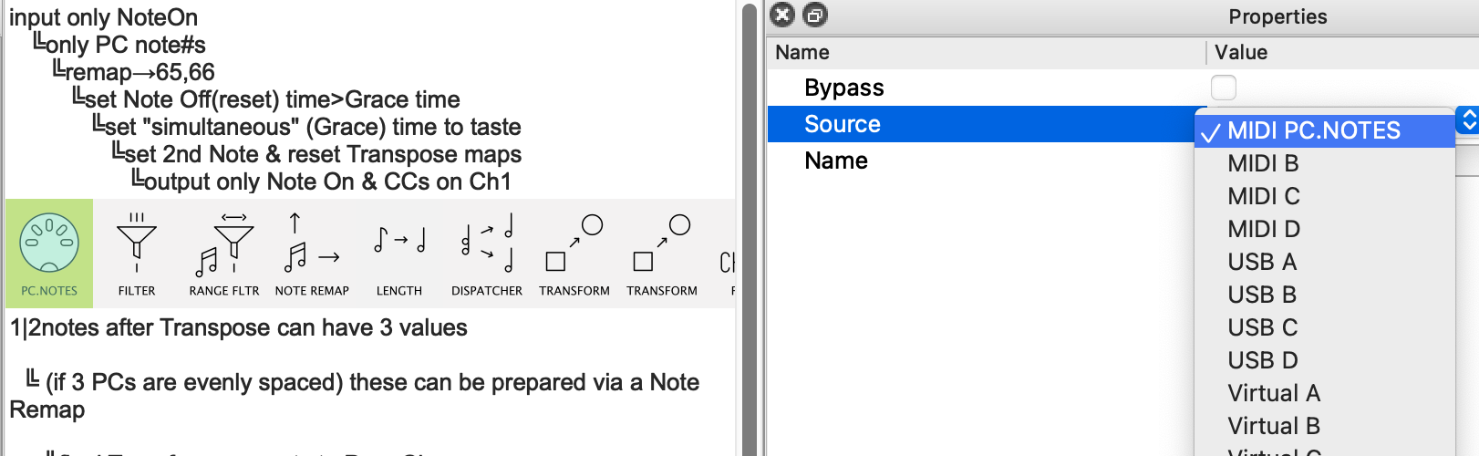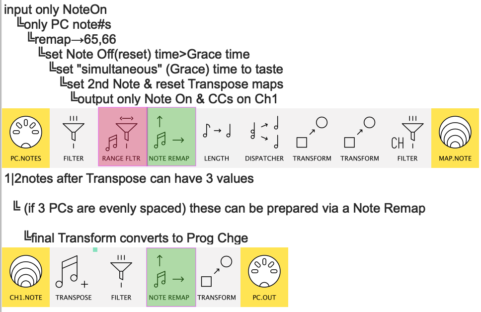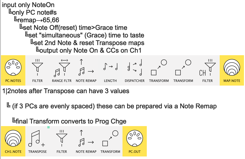 In your case, the small set of possible/allowed “identifier” notes would be Transformed → Program Change
