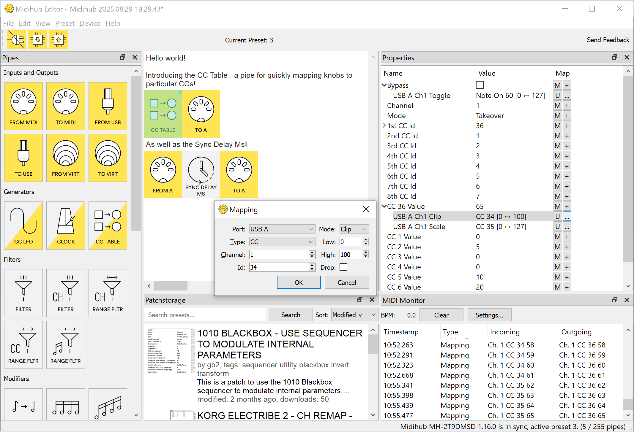 Hey guys! What better way to celebrate Midihub’s 6th birthday than with an awesome new software update!? This time we bring you the means to write out your comments within the Preset, as well as extended mapping modes and ranges for even more versatility and fine tuning your audio setup with milliseconds based Sync Delay Ms!