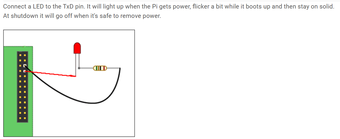 I am incorporating a Pisound with MODEP into a project with a sealed enclosure and would like to mount an LED to show the power status of MODEP. (Primarily so I know it is ok to unplug power when MODEP has fully shutdown.) - I am also mounting an external button connected to GPIO 17