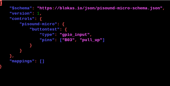 echo btn gpio B05 input pull_up > /sys/pisound-micro/setup