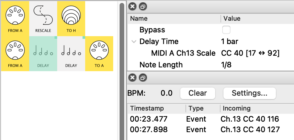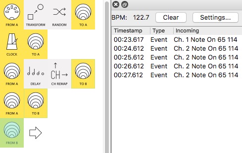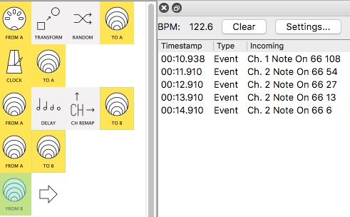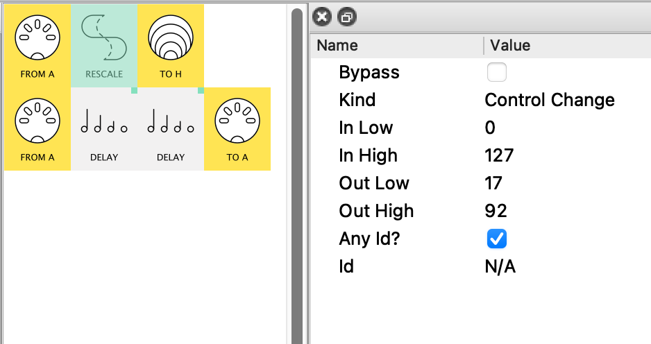 The first is mapped directly to the CC coming in MIDI-A: