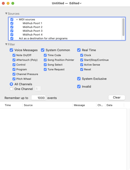 When I connect Midihub it does show up in my Snoize MIDI Monitor app v1.5.4 on MacOS Sonoma v14.8.1 but it does not monitor any incoming or outgoing midi traffic. If I connect same synth to my Emagic Unitor8 interface, it does show traffic again. Is this a known bug or is something wrong with my computer?
