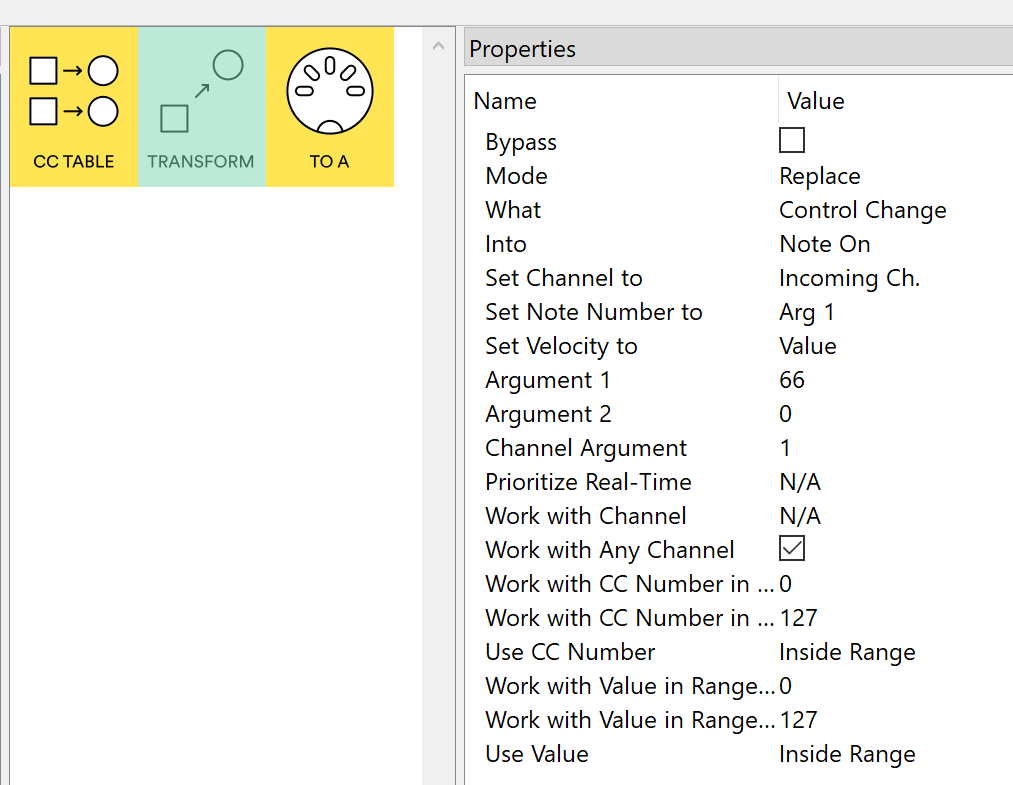 We can give the latter a try - add a Transform pipe just before the MIDI OUT pipe so it converts the CC into the Note On 66, set it up like below. As it affects ‘active track’, I hope the Channel number is used to indicate which particular track you want muted, according to channel mapping settings in Octatrack’s menus.