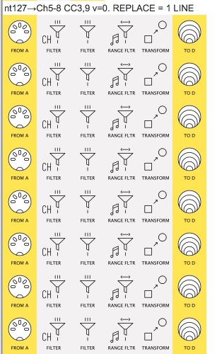 Oh sorry, I uploaded the old version, the newer one doesn’t have those pipes. Anyway, I don’t think that one affects, because it’s just a CC remap that is not 127, and also is not sent to Midi Out C (the one sending back to the Octatrack…) Anyway, I attach the version I have done ready for monitoring test-virtuals.mhp (3.2 KB)