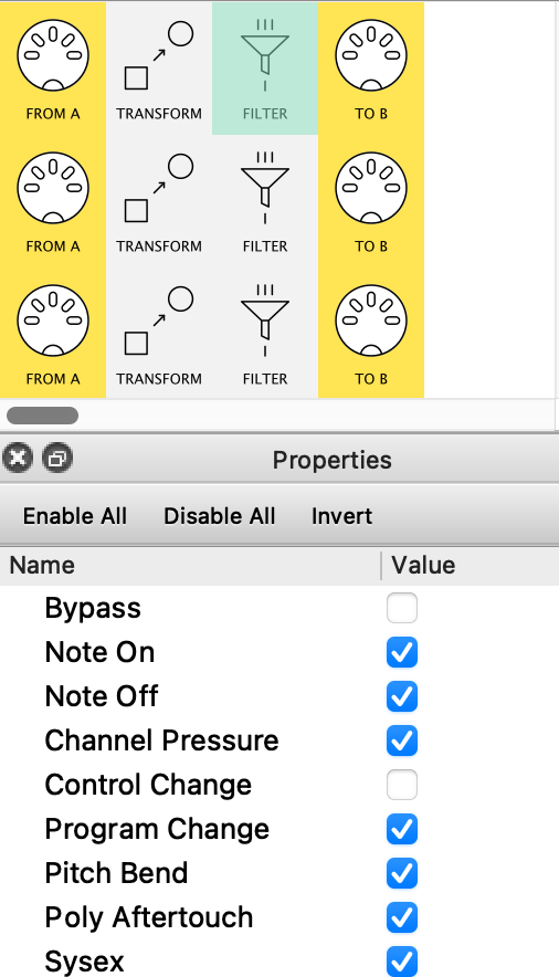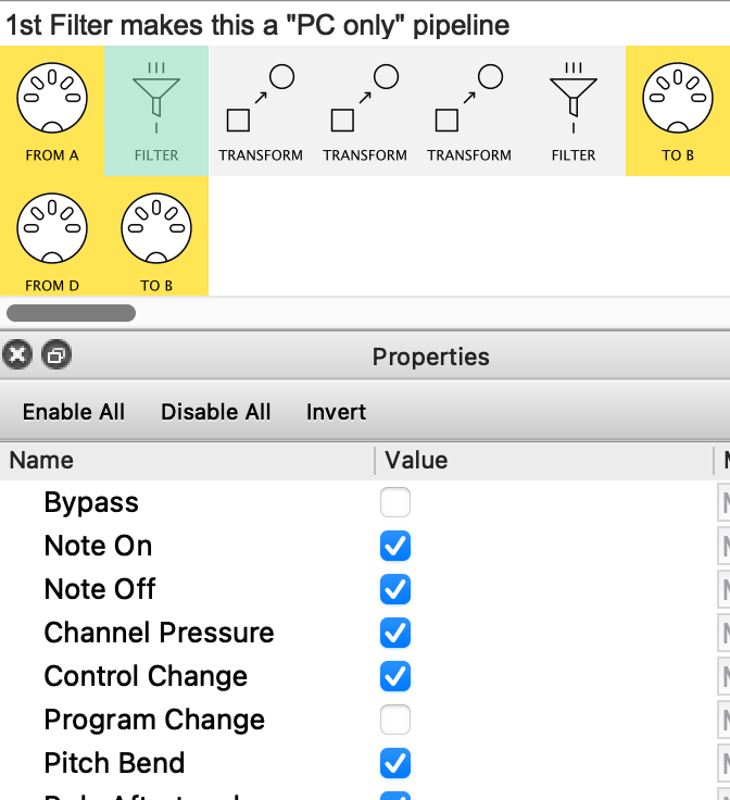 At this new line, you will see the entire MIDI stream in the MIDI Monitor, so you can see all the duplicate events the same as the device connected to MIDI B output sees.