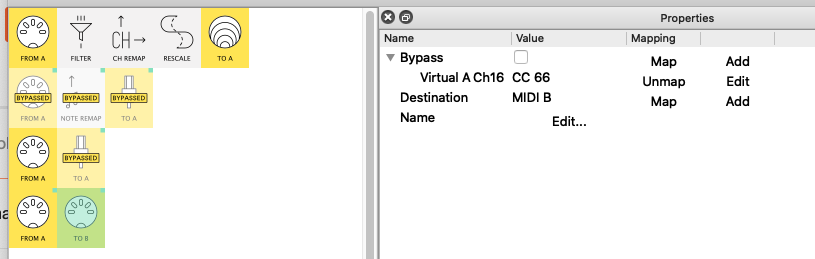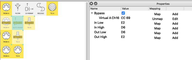 I accounted for the inversion CC69 to be a toggle within MidiHub. Itās just switching the ports with CC66 thatās a current roadblock. If the CC66 control was a toggle instead of momentary than it wouldnāt require extra pipes to turn it into a toggle.