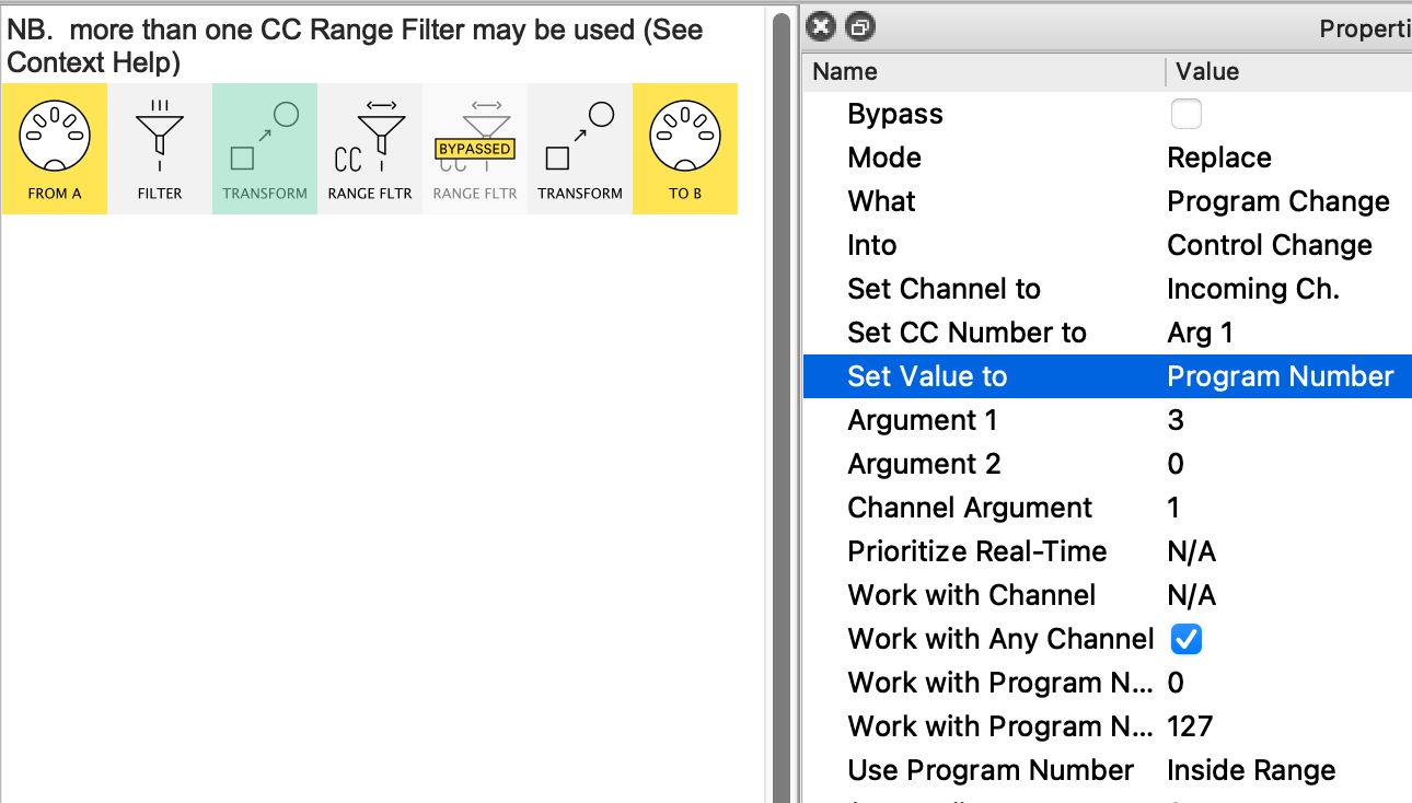 Thank you! I will try this out and report back. Although i will admit, my brain is still trying to wrap itself around your solution here. How can i have just one pipeline for all the PC transforms? They are being transformed to different CC messages depending on which PC is triggered. that part i still don’t understand.