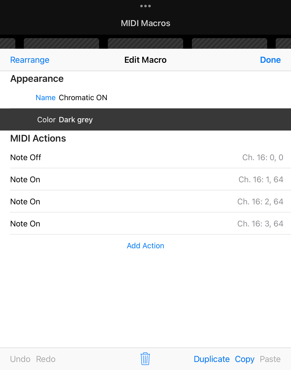 In the below screenshot taken from my iOS MIDI Macros app enables the Chromatic scale (C-1 Note Off Ch. 16: 0,0) and bypasses the Egyptian (C#-1 Note On Ch. 16,64), Gypsy (D-1 Note On Ch. 16,64) and Major (D#-1 Note On Ch. 16,64) scales. Take note (no pun intended) Note ON 64 is BYPASS and Note OFF 0 is ENABLE. I love all the hard work you put into midihub, but WHYYYY?? LOL