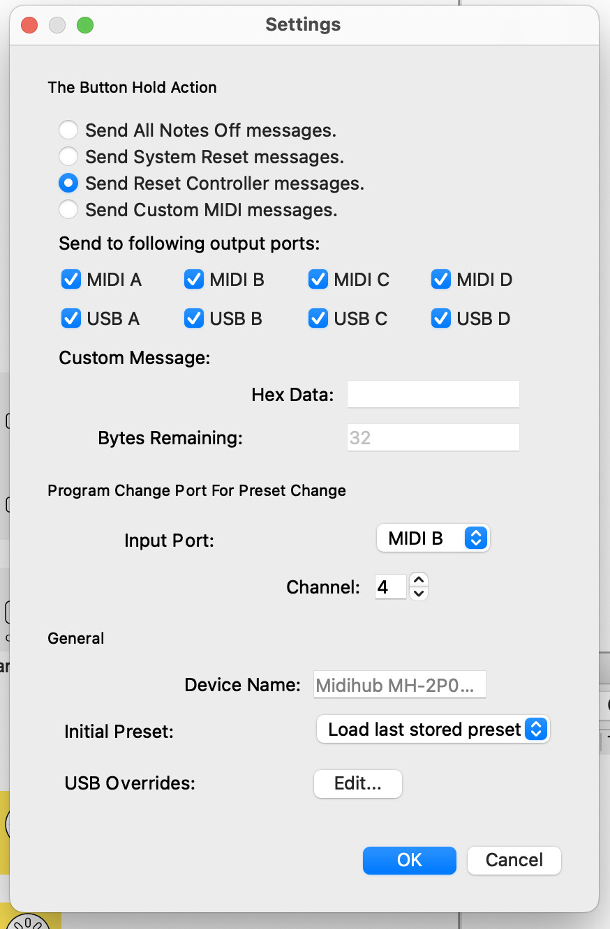 My Midihub suddenly stopped responding to Program Change messages for preset switching.