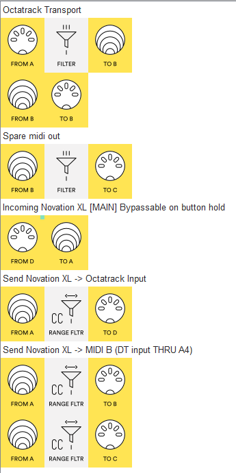 Other than the Digitakt → A4 THRU yes, Midihub is the center.